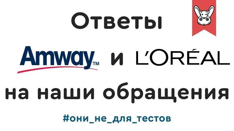 На прошлой неделе мы с вами обращались к Amway и L'Oréal Paris с призывом поддержать на заседаниях рабочей группы предложения о запрете тестирования косметики на животных. Кстати, огромное всем спасибо за такой массовый отклик — десятки комментариев и имэйлов были отправлены этим компаниям, и их уже нельзя было проигнорировать.