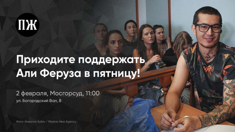 Призываем всех участников кампании #ОтвалиОтАли и неравнодушных прийти завтра в Мосгорсуд (Богородский вал, д. 8, ст. м. Преображенская площадь) на заседание дела по Али Ферузу. Начало в 11:00. Заседание пройдет в зале 607 Апелляционного корпуса.