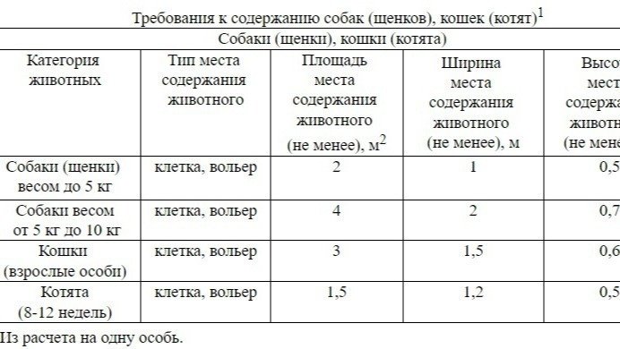 Минимальная площадь вольера или клетки для собак от 5 до 10 кг стала 4 кв. метра (для собак и щенков до 5 кг — 2 кв. метра).