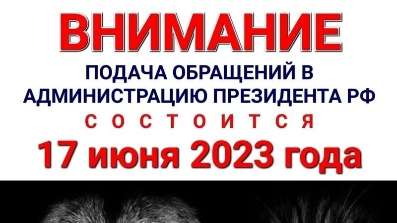 Подача Обращений в Администрацию Президента РФ состоится 17 июня 2023 г.с *09:30 до 16:30*