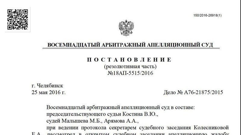 Отличная новость пришла из Восемнадцатого апелляционного арбитражного суда