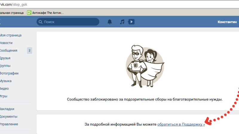 Вы можете помочь нам, для этого перейдите на страницу группы https://vk.com/stop_gok а затем перейдите по ссылке"обратиться в Поддержку", и напишите несколько слов в поддержку нашей группы.