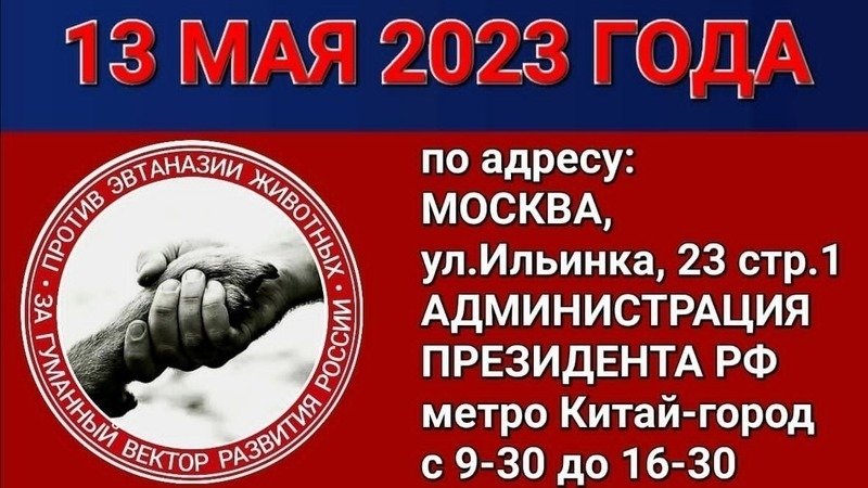 13 мая состоится 5-ая ЖИВАЯ ЛИНИЯ в МОСКВЕ к АП РФ против убийства бездомных животных.