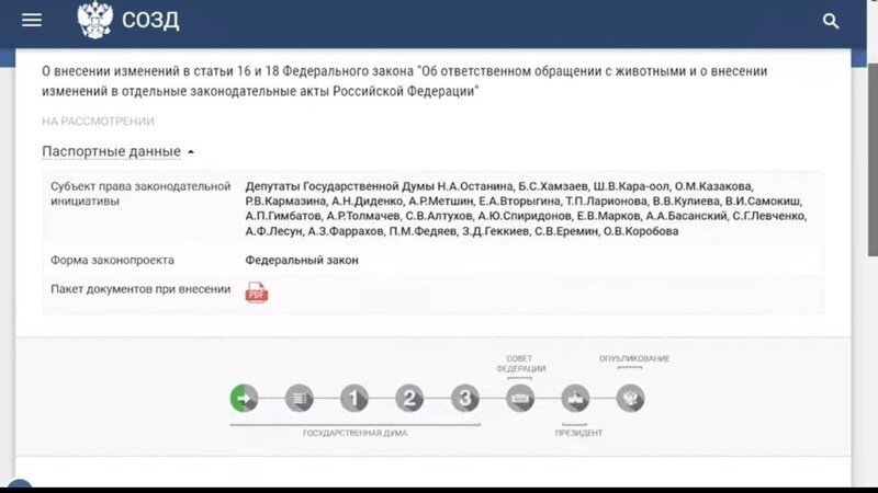 Я выражаю недоверие депутатам Государственной̆ Думы, инициировавшим внесение и принятие законопроекта, превратившего закон «Об ответственном обращении с животными» в закон о легализации живодёрства в российской̆ Федерации.