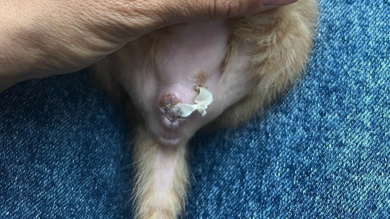 К 16 июля у одного из котят случился сильный отек препуция, который уже не удавалось снять локально, мы посетили врача: порекомендовал размачивать воспаление, сушить и отводить мануально.