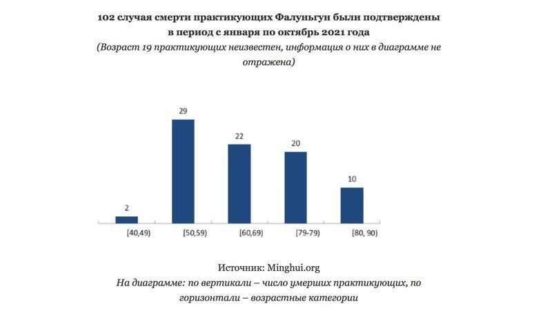 В период с января по октябрь 2021 года были подтверждены случаи смерти 102 практикующих Фалуньгун