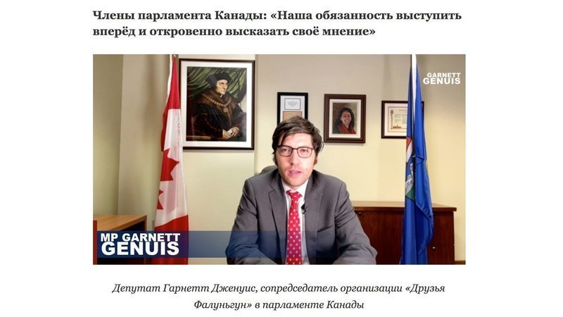 Член парламента Канады Гарнетт Дженуис, сопредседатель организации «Друзья Фалуньгун» в парламенте Канады, выразил свою поддержку практикующим Фалунь Дафа посредством видео «Я обязан выразить своё мнение».
