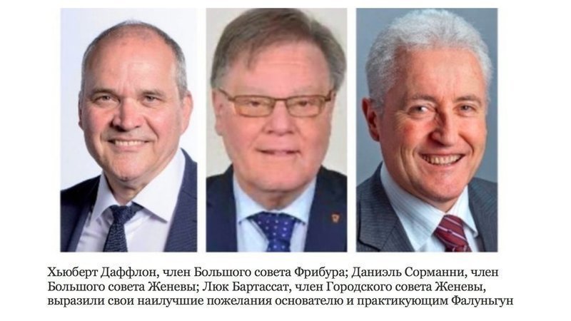 Швейцария. Избранные должностные лица поздравили основателя Фалуньгун с Новым годом