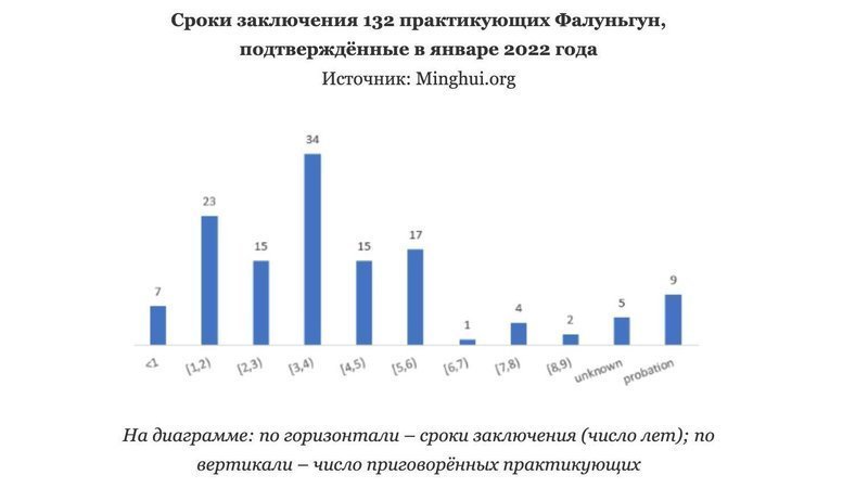 (Minghui.org) В первом месяце 2022 года получена подтверждённая информация о 132 практикующих Фалуньгун, приговоренных к тюремному заключению за духовные убеждения, в том числе 8 случаев произошли в 2020 году, 88 – в 2021 году и 36 – в 2022 году.