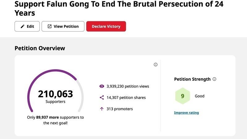 Neuigkeit zur PetitionПоддержите Фалуньгун, дабы положить конец преследованиям, которые продолжаются 26 летБолее 210 000 подписей, пожалуйста, помогите нам распространить правду