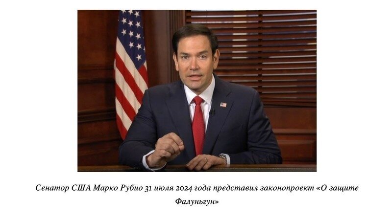 (Minghui.org) Сенатор США Марко Рубио 31 июля 2024 года представил законопроект «О защите Фалуньгун», который предусматривает введение санкций против насильственного извлечения органов в Китае, согласно пресс-релизу, выпущенному в тот же день. Сенаторы Рон Джонсон, Роджер Маршалл и Том Тиллис являются коспонсорами законопроекта. Ранее Палата представителей США приняла законопроект «О защите Фалуньгун» 25 июня, который был представлен конгрессменом от штата Пенсильвания Скоттом Перри.