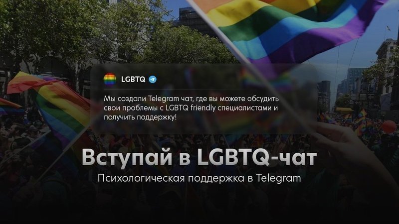 Мы создали Telegram чат, где вы можете обсудить свои проблемы с LGBTQ friendly специалистами и получить поддержку!