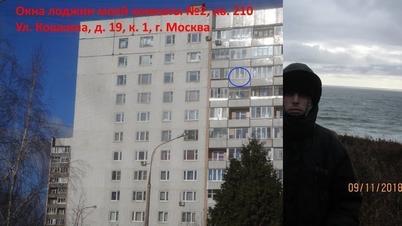 Прошу всех неравнодушных граждан помочь мне в продаже моей - вышеуказанной - комнаты №2, т.к., не имея возможности продать мою данную комнату, я лишён возможности купить себе (с мамой) - взамен - иное жильё - безопасное для проживания, где я бы мог: не только беспрепятственно жить, но и беспрепятственно продолжать заниматься наблюдательной астрономией https://vm.ru/news/573558.html . Предлагаю неравнодушным гражданам присылать мне на мой e-mail: romanov_philipp@mail.ru - фотографии (со штампами даты и времени на них) окна моей комнаты (в т.ч. - и окон застеклённой лоджии) - видом с улицы, сфотографированные в любое время суток и в любой календарный день, т.к. на данный период времени уже имеется запись телефонного разговора от жильца многоквартирного дома по вышеуказанному адресу, что - с его слов - в моей комнате - через окно - с улицы - он видел, что периодически включался и гас свет (хотя моя комната №2 оставалась закрытой на ключ - при моём и Романовой Л.В. уходе из неё - при видеосъёмке происходящего и при двух свидетелях - жильцах данного многоквартирного дома), - что, не исключено, - может свидетельствовать о том, что моя комната №2 была вскрыта, - с незаконным проникновением в неё иных граждан (я - собственник - и зарегистрированная по вышеуказанному адресу Романова Л.В. - моя мама - никогда не были в данной коммунальной кв-ре - с вышеуказанного момента нашего ухода с территории данной коммунальной кв-ры), - с незаконным использованием моей собственности - моей комнаты №2, с - не исключено - порчей и/или разграблением моих (в т.ч. - дорогостоящего моего астрономического оборудования, моих наград, собственных рукописей моих научных работ) и Романовой Л.В. различных документов и личных вещей (в т.ч., - не только - сезонных и повседневных: одежды и обуви, как и посуды, постельных принадлежностей, но и новых: МФУ, обогревателя, телевизора, э/чайника, видеокамеры МГТС и т.д., и т.п.), - стоимостью сотен тысяч рублей (имеется соответствующая опись - при видеофиксации). Для точного выполнения и отправки мне вышеуказанных фото окна моей комнаты - прилагаю - для ориентировки - фото https://ic.pics.livejournal.com/filipp_romanov/65293445/683957/683957_original.jpg окна (выходящего обзором на поликлинику №213) моей комнаты, расположенной на 12 этаже 14-этажного многоквартирного дома.