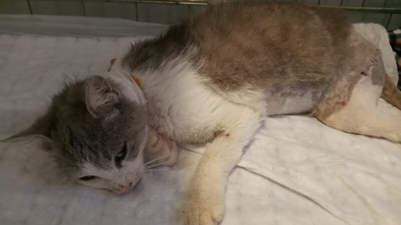 Это тяжелейший пациент! Кормление через стому впервые в нашей практике. Клиника, в которой спасали нашу кошечку очень дорогая, но ОРИТ (отделение реанимации) это всегда огромные деньги.