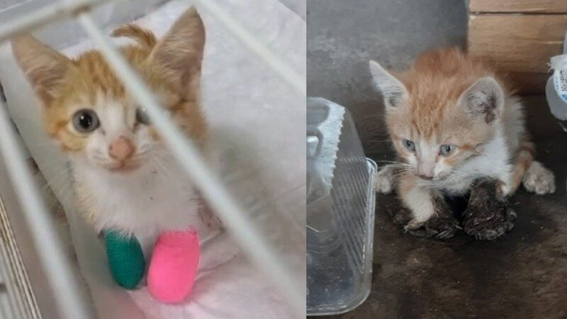 Масюська двухмесячный котеночек появился на заводе минеральных вод. И ему тележкой переехали лапки.