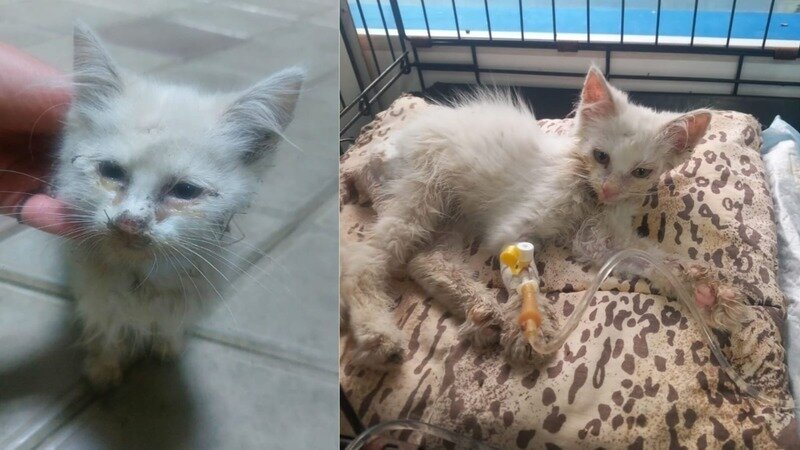 На данный момент котенок получает терапию (капельницы, антибиотик, витамины)