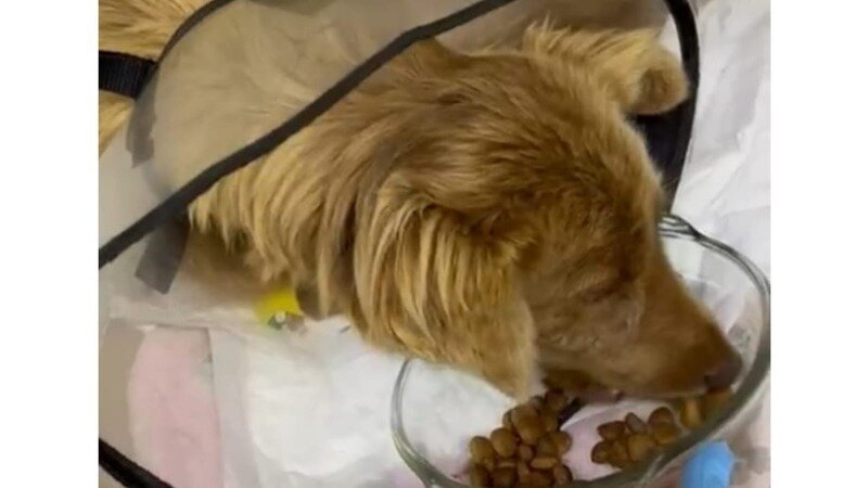 Вечером порадовала наша новенькая Малинка (собака - инкубатор). Доктор прислал видео, где наша красавица кушает с аппетитом сухой корм!