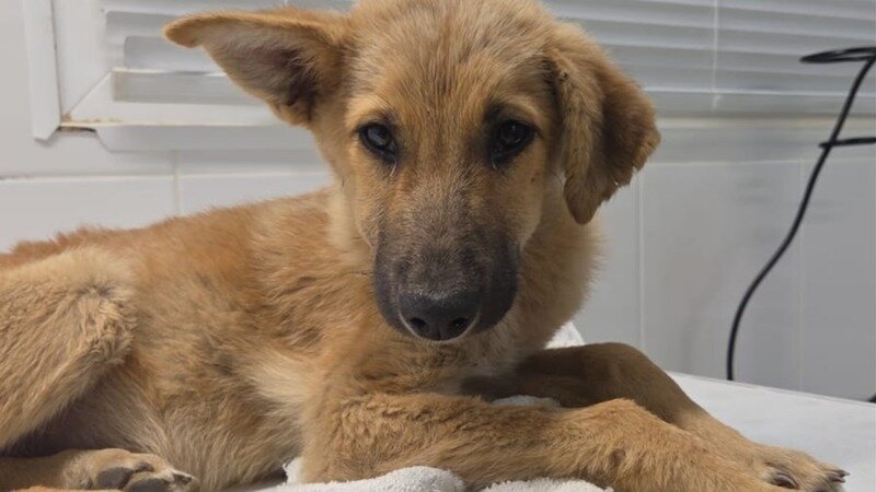 Щенок Дэфи поступил уже в критическом состоянии с пироплазмозом. Его попытались стабилизировать в горячем ключе. Мы нашли волонтёра который отвез щенка в Краснодар в реанимацию, но едва он занёс малыша в клинику, тот начал умирать. Два сеанса реанимации его запустили, но это почти кома, врачи сказали усыплять и не истязать животное.