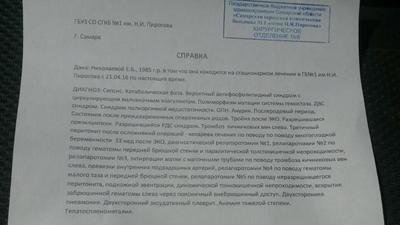 Муж приезжал поговорить с врачами о состоянии 11 мая, но Лену довели до слез, заставив позвонить мужу что б он ушел, тк им некогда ходить ко всем, не смотря на то, что сами сказали приехать именно с 14.00 до 16.00 в часы приема и все расскажут, тк по телефону они ничего не рассказывают... Вышла только неонатолог. 12 и 13 Лена просила не узнавать ничего у врачей по ее состоянию.. Ей говорили, что всё, что с ней происходит это нормально.. 12 и 13 Лена уже потихонечку ходила сама к деткам, 2 раза у них была, вот 13 после похода к детям, разговаривала с мамой и сказала, что ей что-то очень плохо, тошнит... Спрашивала у мед.сестер и врачей- да это нормально, так бывает после наркоза, и через пару часов ее увозят в реанимацию с отказом почек....За первые 15 дней, в реанимации, она перенесла 8 операций... Состояние до сих пор между жизнью и смертью.... 17 июня возили на КТ в другую клинику, тк там лучше аппарат.. Нашли еще несколько гематом.. Сейчас поставили диагноз: антифосфолипидный синдром.. Это похоже на лейкемию.. Такая больная у них впервые.. Добавили, что выживаемость 20 %.. Но делают всё, что в их силах... Но у них нет даже нормального КТ...