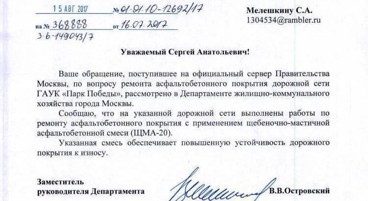 Petition updateВерните в Парк Победы на Поклонной горе нормальный асфальтОтвет из Департамента ЖКХ г. Москвы