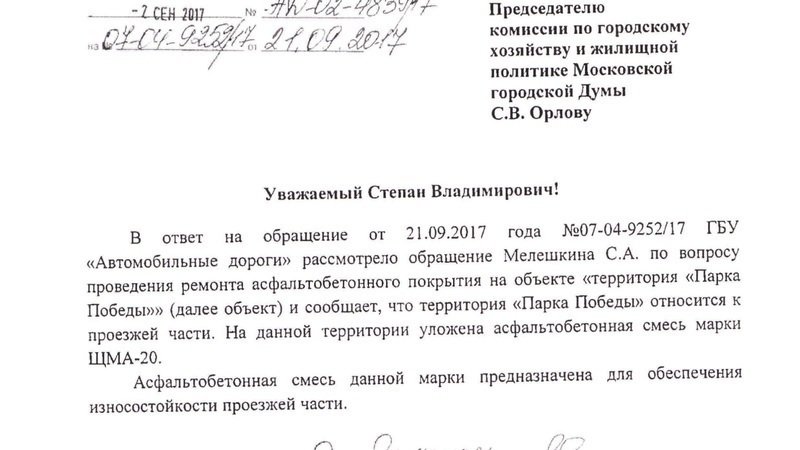 Petition updateВерните в Парк Победы на Поклонной горе нормальный асфальт"Территория "Парка Победы" относится к проезжей части"