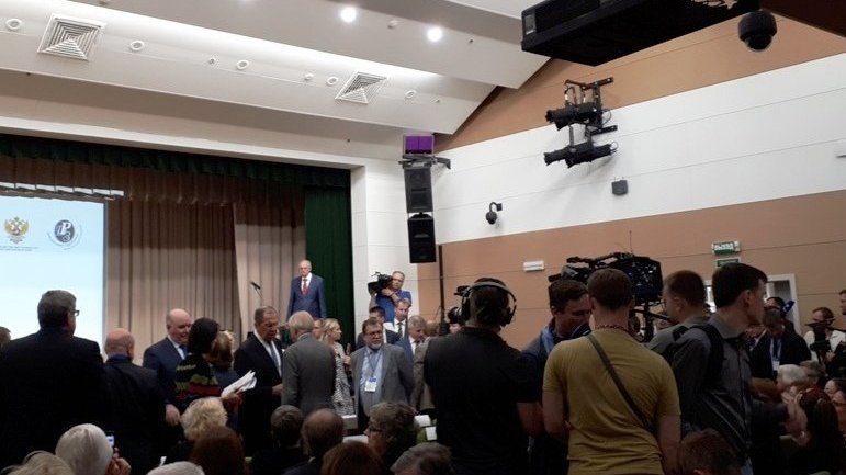 На фото: В кулуарах. Многие хотели запечатлеть беседу министра иностранных дел России С.В. Лаврова и кн. Н.Д. Лобанова-Ростовского.