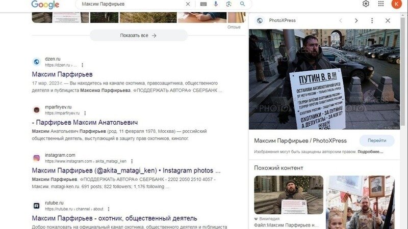 Парфирьев лезет во власть. И находит догхантер там свою поддержку. Это - Единая Россия. Лобызается с ними.
