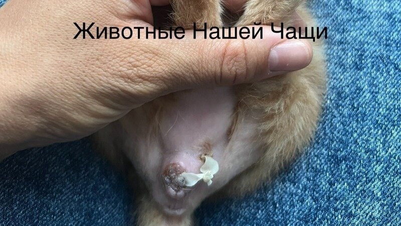 К 16 июля у одного из котят случился сильный отек препуция, который уже не удавалось снять локально, мы посетили врача: порекомендовал размачивать воспаление, сушить и отводить мануально.