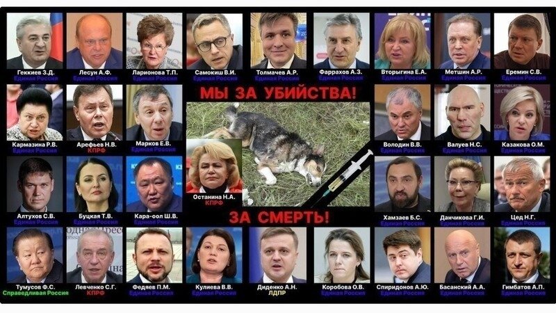 На фоне разыгравшегося живодерства, ЛЮДИ встали и объеднились против живодеров во власти. Лично я считаю, весь этот живодерский состав с фото должен положить свои кровавые мандаты на стол и кто - на выход, кто в тюрьму!