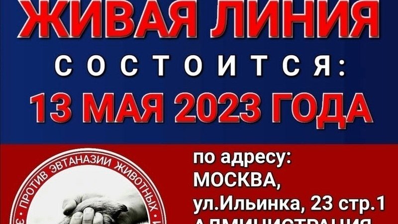 13 мая состоится 5-ая ЖИВАЯ ЛИНИЯ в МОСКВЕ к АП РФ против убийства бездомных животных.