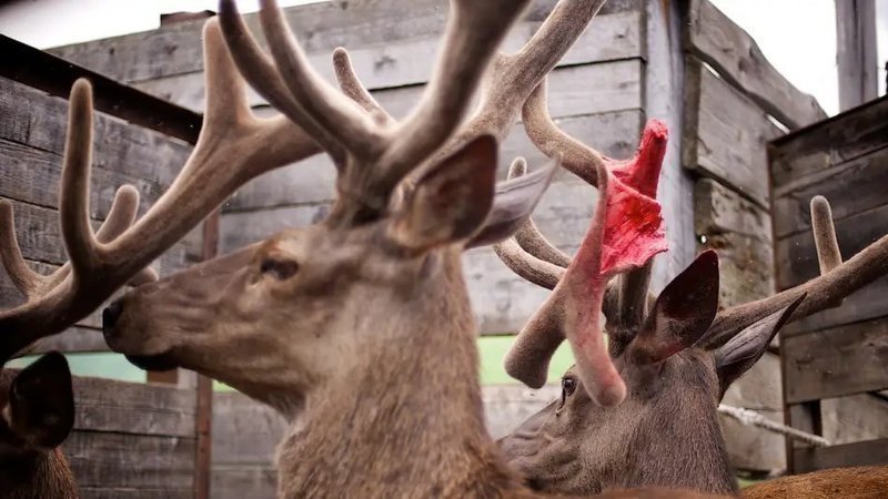 Этот репортаж, конечно же, о «благородной цели» - оздоровлении и омоложении людей. И получить всё это можно, конечно же, только за счёт животных, а именно, с помощью маральих пантов. Если в России среди людей мыслящих и не одурманенных идеей коммерческой выгоды спиливание нежных молодых рожек не вызывает ничего кроме недоумения и отвращения (медицинский эффект продуктов из оленьей плоти так не доказан), то в сопредельной республике пантомания, похоже, набирает обороты.