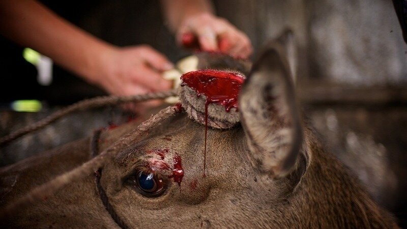 Панты – молодые рога оленей, наполненные в период роста кровью Молодые рога пронизаны кровеносными сосудами и нервами и очень чувствительны. Можете себе представить, какой болевой и психологический шок переживают животные при срезке пантов!