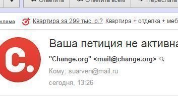 Спасибо всем, кто не остался равнодушен к нашей проблеме! Друзья, давайте приложим еще немного усилий, нужно больше подписей. Сегодня пришло письмо, что петиция неактивна, нужно больше голосов. Кому могла, я уже разослала просьбы подписать. Привлеките ваших знакомых, друзей, коллег, родственников. Я так поняла, что после ста подписей петиция становится активной. Пожалуйста, опубликуйте ссылку в ВКонтакте или Одноклассниках. Разошлите дальше, это ведь не требует больших усилий, правда?