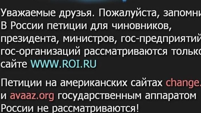 Мне друзья прислали информацию, что петиции на данной платформе не рассматриваются государственным аппаратом РФ. Возможно. Но они привлекают внимание СМИ, телевидения (в некоторых случаях), и сколько раз я читала под подписанной петицией "мы победили!" Предложенный портал ROI.RU вначале заинтересовал. Но снова есть "но".