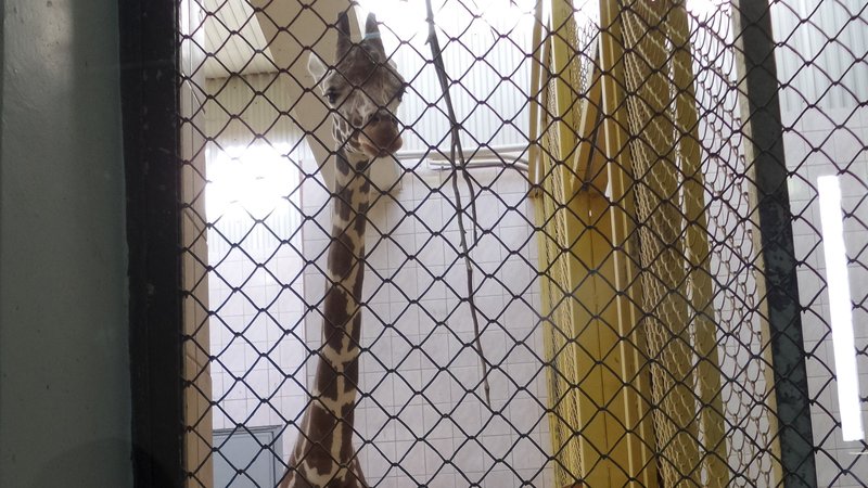 5. Но апогей всего жираф. Более тесного жилища для вольного обитателя саванны и представить невозможно! Его вольер, где он может стоять, свободно вытянув шею, похож на карцер, а сам он на заключённого. Там действительно можно только стоять…В глазах животного грусть, которую нельзя описать. Пока я его фотографировала, слышала возмущённые реплики людей, стоявших рядом. У него есть вольер на улице. Он немного свободней. Вопрос в том, сколько дней в году это животное может проводить на улице в условиях питерского климата? И целесообразно ли вообще держать здесь африканца? Он что, весь год так стоит?! Несколько лет назад я была в одном из зарубежных зоопарков. Там тепло, и загон для жирафов – достаточно обширный кусок саванны. По-моему, если нельзя обеспечить животному условия, близкие к его среде обитания, то и не надо его мучить!