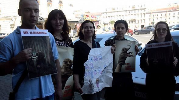 At last the activists decided to go on single pickets. At some moment, a circus employee approached one of them and tore up two posters in which there were slogans against the use of animals in the circus. One of the activists was following the elephants, shouting slogans, when a woman from the crowd attacked her crying “Do not spoil our holiday!"