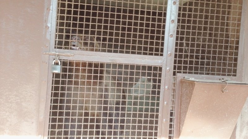 The owner of the cafe "Hearth" (Matrosova Street, 95 Togliatti, Samara region) has been keeping wild animals to attract clients for a number of years. This time it’s an adult bear and a small bear cub. They are living in tiny cells for the customers’ fun. The bears can hardly turn around. They can’t move, they can’t sleep, they can’t fulfil their physiological needs (hibernation, etc.).