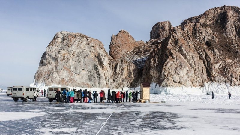 На фото: Байкал. Очередь в туалет