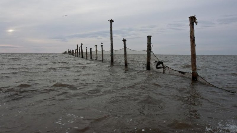 Заездки - длинные конструкции с сетями, растянутые на сотни метров поперек реки. Между всеми забитыми столбами, начинающимися от берега, натянута сетка, а столбы, кроме того, имеют канатные растяжки длинной 150-200 метров в разные стороны. (Видео о заездках мы сегодня уже видели https://www.youtube.com/watch?v=MehO7xRVsPA )