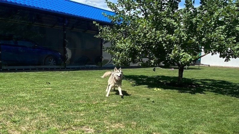 Приехав на место я был просто поражен в хорошем смысле условиями, в которых будет жить Девочка)! Большой дом, вольер,будки, еще одна старая Собака – соседка, кошка, Дети и Мама с Папой – в общем просто супер)! Великолепные Люди и отличные условия)! Я очень рад – что мы смогли дать несчастной это все)! И она сразу же начала вечело бегать по газону и знакомиться с Семьей)!