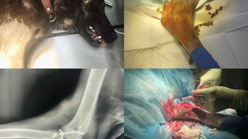 На неделе Докторам удалось вытащить Сеню из тяжелого состояния вызванного укусом клеща… И как только это стало возможно Врачи провели запланированную основную Операцию – восстановление поврежденного сустава… Антон много часов провел в операционной, было НЕ просто исправить все и приблизить к состоянию “как было” до травмы… Антон Борисов использовал стальные детали,леску, болты и весь свой огромный опыт для спасения лапки Сени… Но травма сложная и сильно запущена, Доктора сказали что вероятность восстановления сустава мала,скорее работать он уже не будет… Но опять же все тоже самое мне говорили и про Чемпиона – а Он бегает как щенок каждый день и все у него сгибается)! В общем не люблю и не буду делать прогнозы, главное Сеня ЖИВ, победил пироплазмоз, вынес операцию, и активно восстанавливается)!
