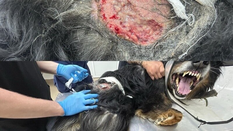 На рассвете мы были шокированы – на боку сзади огромная кровавая рана, видны мышцы, нет шерсти… Живет Звонок один, никто в Вольер НЕ заходил и НЕ выходил (проверил по камере), острых/посторонних предметов/частей Вольера НЕТ… Долго не могли понять что произошло, но заметив язык стертый до мяса, и отправив фото Антону Борисову все стало проясняться… Эту огромную рану Он выгрыз себе сам за ночь… Антон даже назвал термин “самостигматизация”,при этом чаще Хвостики отгрызают себе лапу или хвост,когда есть проблема (психологическая возможно даже)…