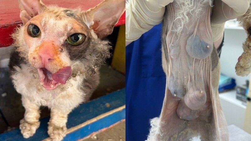 Друзья, всем привет)! Простите, не хотел писать в Пятницу,но так получилось… Сегодня хочу рассказать Вам, как на моем пути снова оказалась погибающая Кошка и я опять НЕ смог пройти мимо… Грейс – исхудавшая, с большими опухолями на груди, добрейшая, натерпевшаяся лишений и боли на улице, преданная “людьми”, почти совсем без шерсти с рождения (порода такая) – приползла из последних сил в детский сад… Девушки оттуда позвонили мне,держать в садике Кошку почему-то нельзя, по одному из многочисленных и часто необьяснимых правил и запретов…