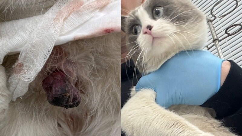 Друзья, всем привет! Сегодня пишу Вам к сожалению экстренно…Позвонили Хорошие Люди, к ним приполз из последних сил, погибающий Кот… Из него в районе живота что-то торчало- кусок мяса с запекшейся кровью(… Не думая ни минуты о нехватке Ресурсов, о том что в Клинике продолжает лечение Эверест, о строительном сезоне и том что материалов нет - поехал на место…Люди очень Добрые и Хорошие, но помочь ничем кроме бинта Они НЕ могли. Женщина в слезах, условия вокруг такие что им самим в пору помогать… Пострадавший лежал обреченно на куртке, почти уже не двигался, терпел страшную боль, ждал неизбежный конец…Я быстро понял – состояние критическое, ждать нельзя, точка невозврата(заражение крови) совсем рядом, надеюсь еще не пройдена… Немедленно забрал пострадавшего и мы понеслись в Клинику! Доктора конечно же раздвинули все приемы и осмотрели Саймона без очереди. Живот чем-то распорот, торчит пока НЕ понятно что, в эти минуты Кота готовят к срочной Операции, пока трудно сказать что именно торчит, но это может быть все что угодно от печени (как у Муси, много лет назад), до кишков или новообразования как у Искорки недавно…