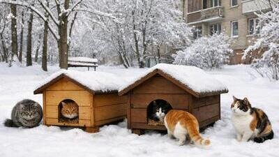 Установить по всему городу сеть специализированных утепленных домиков для зимовки кошек. Такие укрытия необходимо разместить в стратегически важных местах: на территориях жилых домов (вдали от проезжей части), в парках, скверах и возле общественных зданий.