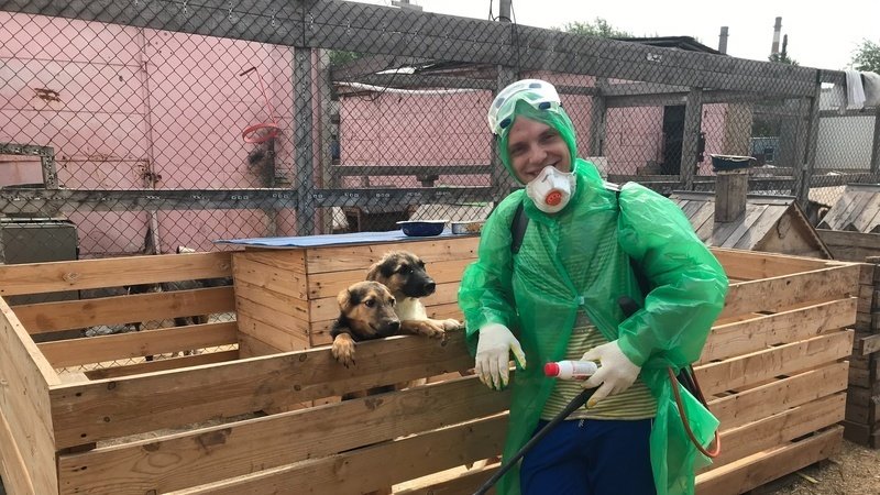 В этом месяце мы решили попробовать сэкономить на дорогостоящей обработке, и не стали вызывать специалистов (расходов к сожалению, как и всегда в общем то много…)!... Взяли обычный садовый опрыскиватель, средства защиты и препарат от этих паразитов…. Пять часов в итоге работали, подменяя друг друга, метр за метром, шаг за шагом, тщательно опрыскивали всю территорию приюта….
