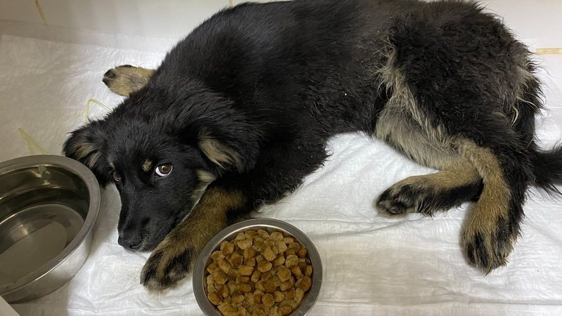 Друзья, всем привет)! Сегодня хочу рассказать Вам о том, как 20 год продолжает давить на нас, в последние дни… Не успели мы с облегчением вздохнуть, порадоваться тому, что девочка- щенок, с выпадением кишки – выздоравливает, как утром Волонтеры нашли на обочине еще одного погибающего, кричащего от боли, вмерзающего в снег малыша… Прекрасный ребенок, примерно три месяца…Вероятнее всего был сбит машиной… Сам передвигаться на данный момент НЕ может… Я сказал ребятам, что нашли его – немедленно везти в клинику…. Я был уверен, по описанию – что речь идет о самом страшном – о переломе позвоночника…