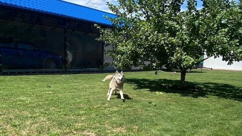 Приехав на место я был просто поражен в хорошем смысле условиями, в которых будет жить Девочка)! Большой дом, вольер,будки, еще одна старая Собака – соседка, кошка, Дети и Мама с Папой – в общем просто супер)! Великолепные Люди и отличные условия)! Я очень рад – что мы смогли дать несчастной это все)! И она сразу же начала вечело бегать по газону и знакомиться с Семьей)!