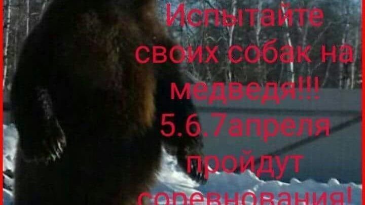 Возникла ситуация, на которую должны отреагировать все мы – в интернете распространяется информация о намеченных на 5-7 апреля состязаниях по натравливанию охотничьих собак на медведей. Место проведения – пригород Якутска. Полный текст объявления «Мы вас ждём на Маганском тракте, 5 км. Испытайте своих собак на медведя. 5,6,7 апреля пройдут соревнования. Тел : 8914-232-22-22».