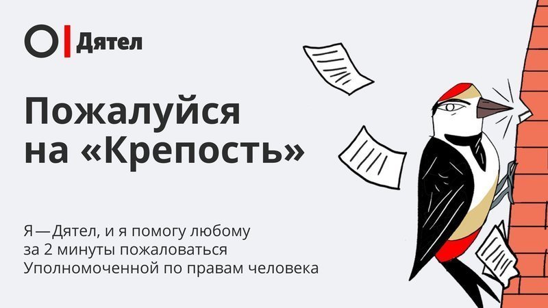 Вчера мы выпустили новый сервис «Дятел», который позволяет за несколько минут заполнить шаблон жалобы на нарушение прав и отправить ее Уполномоченной по правам человека. С помощью «Дятла» пожаловаться на злоупотребление планом «Крепость» могут и те, кого напрямую он не затронул, но возмущает сам факт такого произвола, который мы наблюдали во время массовых задержаний в январе и феврале 2021 года.